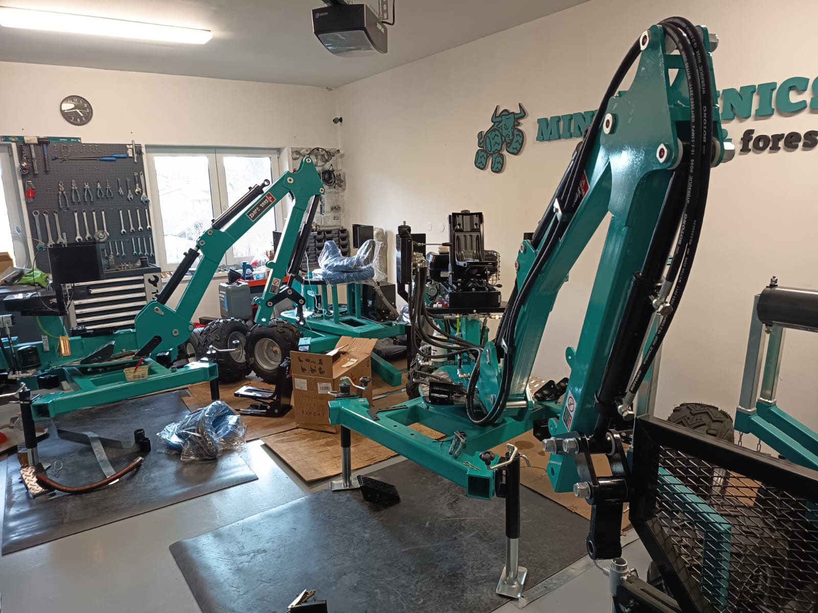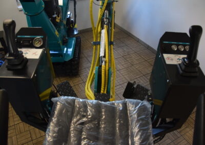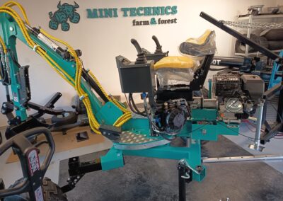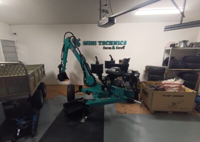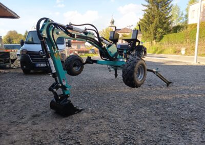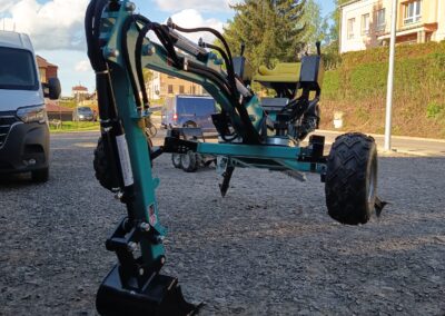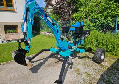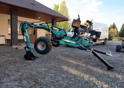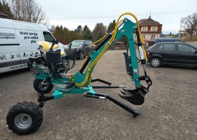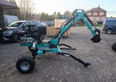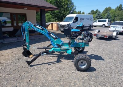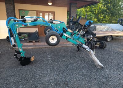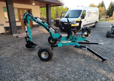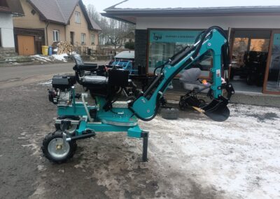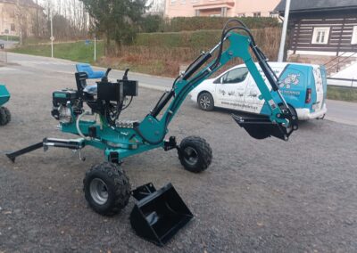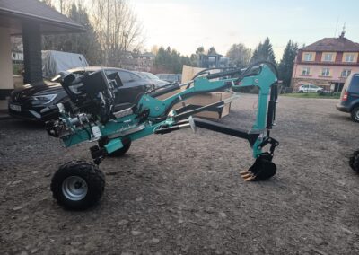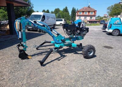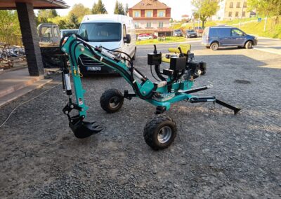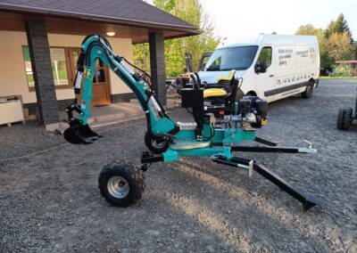 - Nabízíme také hydraulické příslušenství jako půdní vrták, s průměry vrtáku 150, 200 a 250mm, které jsou samozřejmě kompatibilní na všechny modely našich mini bagrů, dále pak hydraulickou svahovou lžíci, hydraulický opěrný palec a novinkou je tu bourací kladivo.