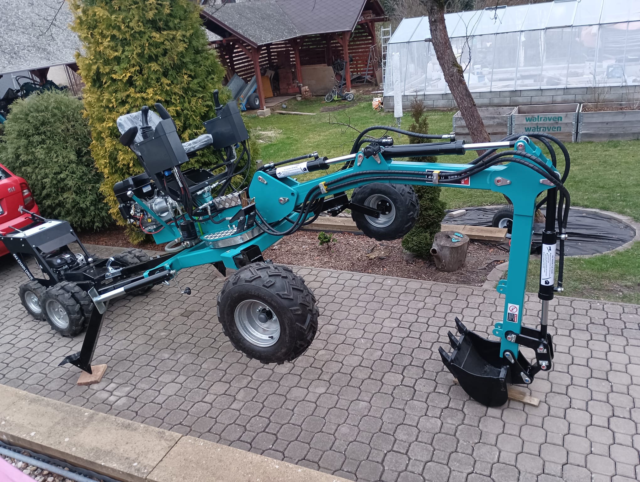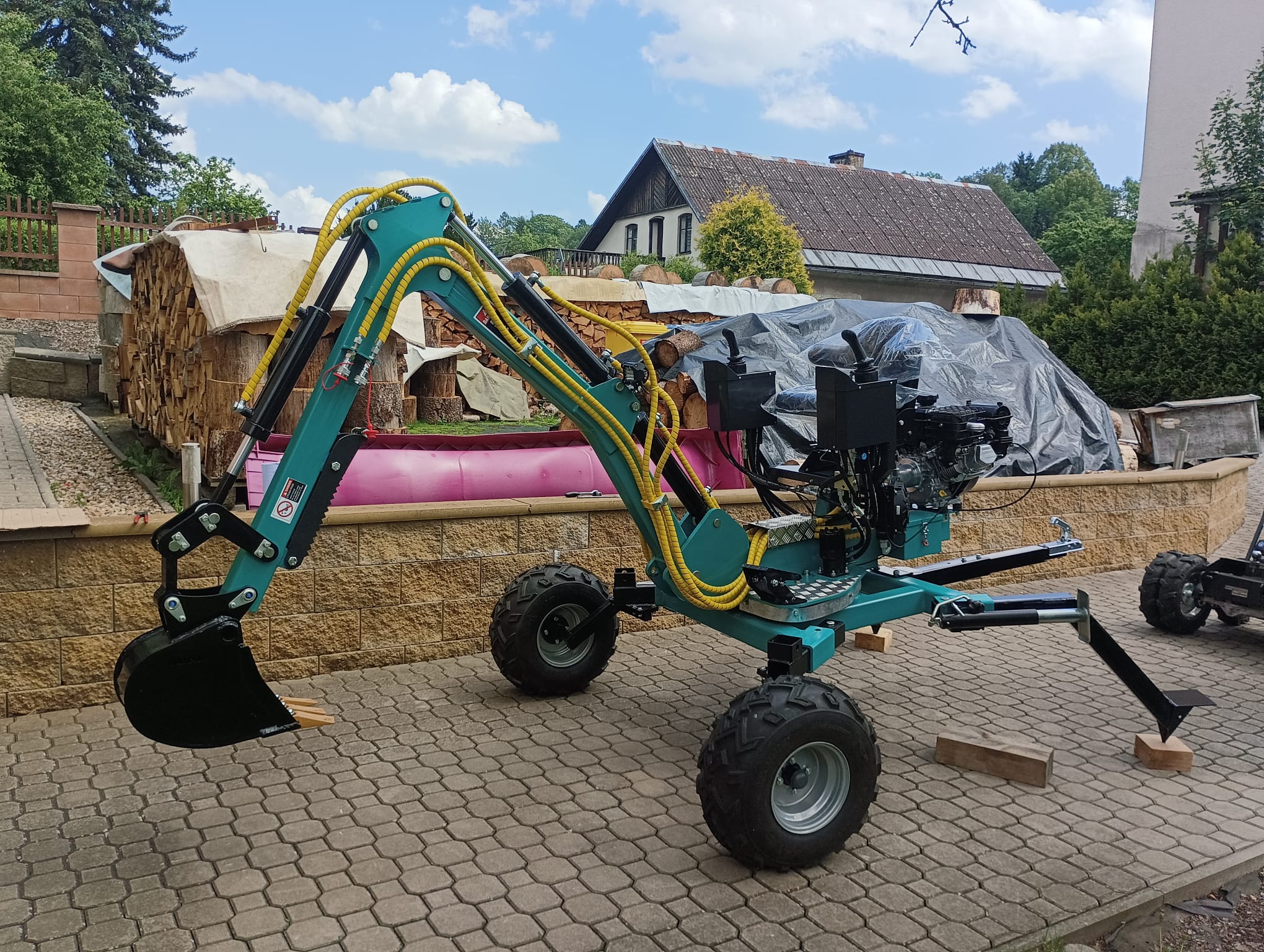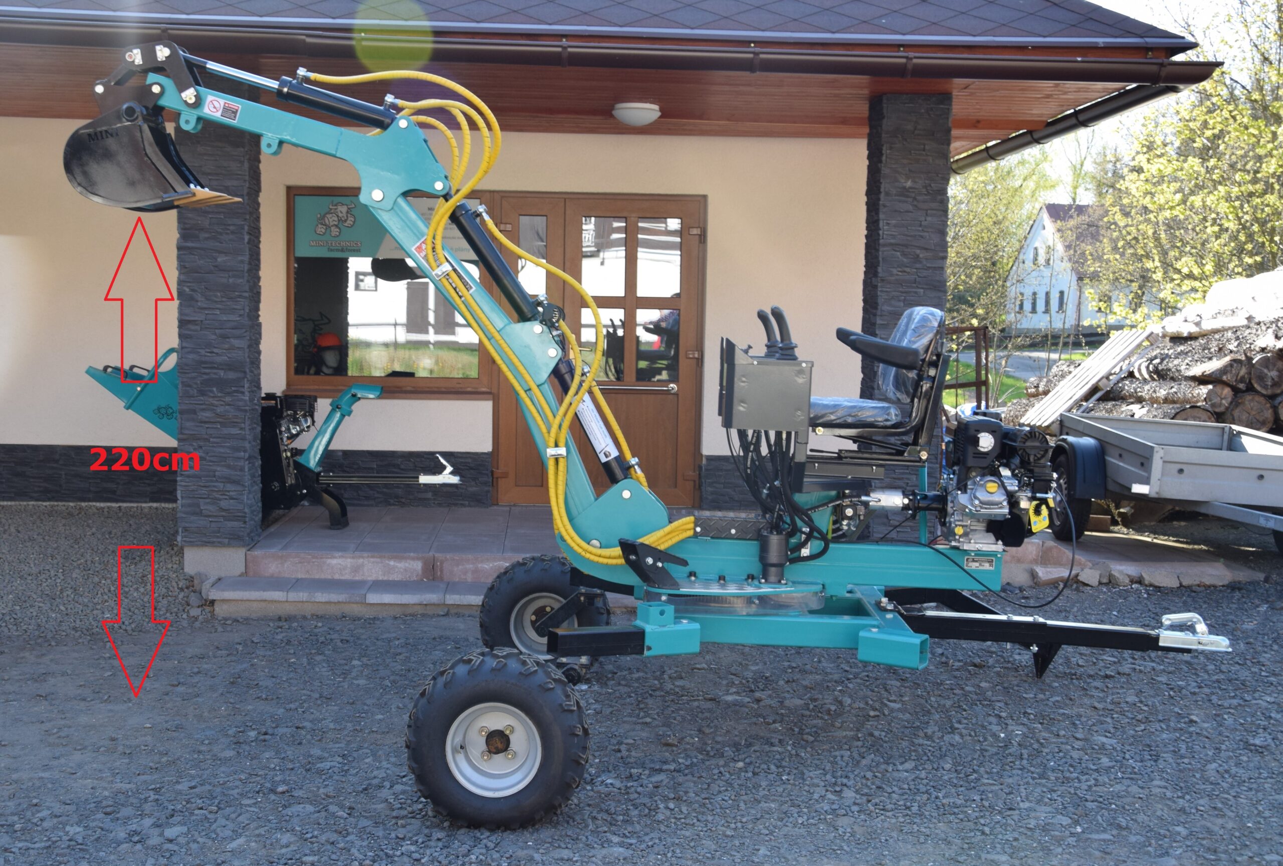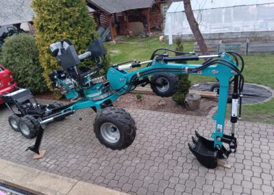 - Nově je možné si také vybrat velká offroadová kola pro lepší prostupnost při práci v opravdu náročném terénu, pro který je tento bagřík přimo stvořený