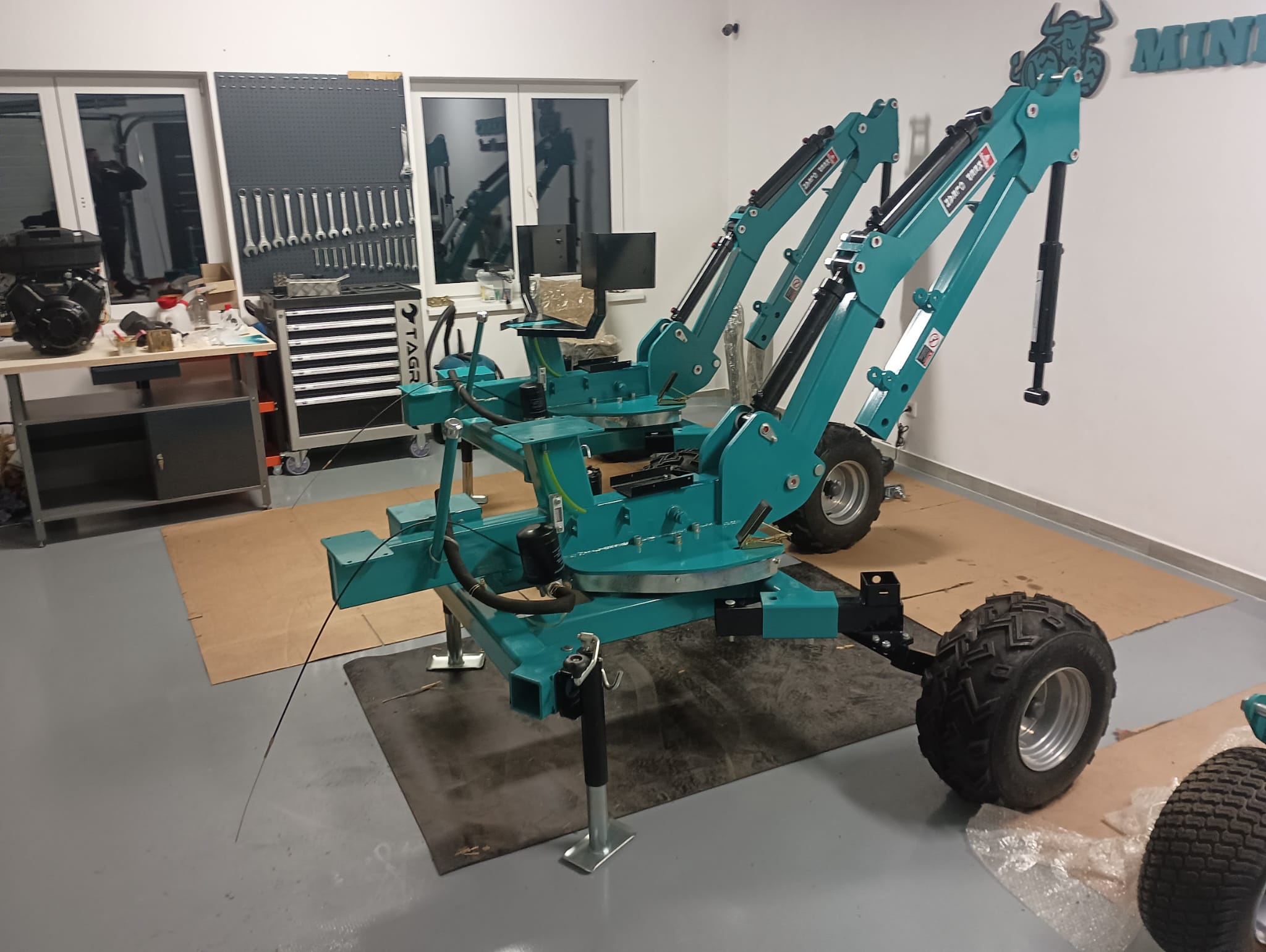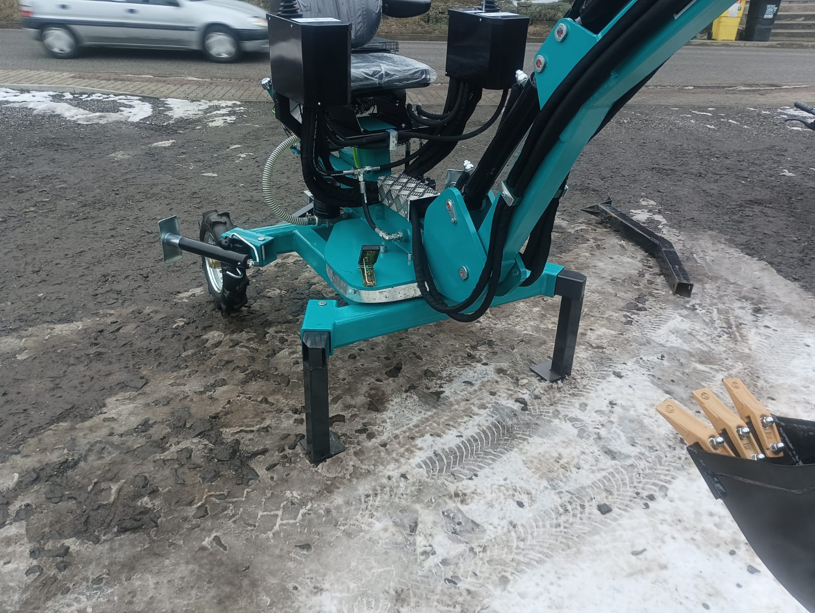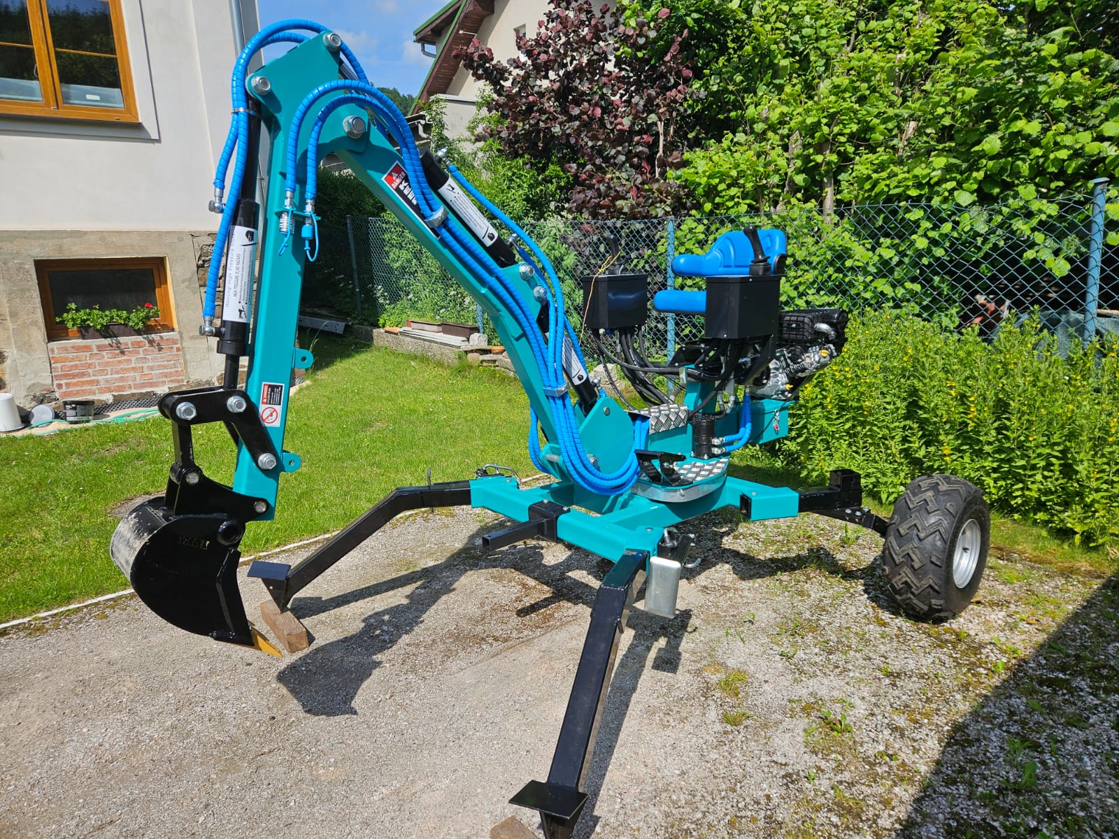 - Nově je možné si také vybrat velká offroadová kola pro lepší prostupnost při práci v opravdu náročném terénu, pro který je tento bagřík přimo stvořený